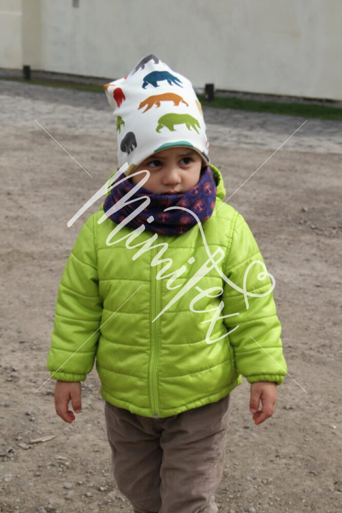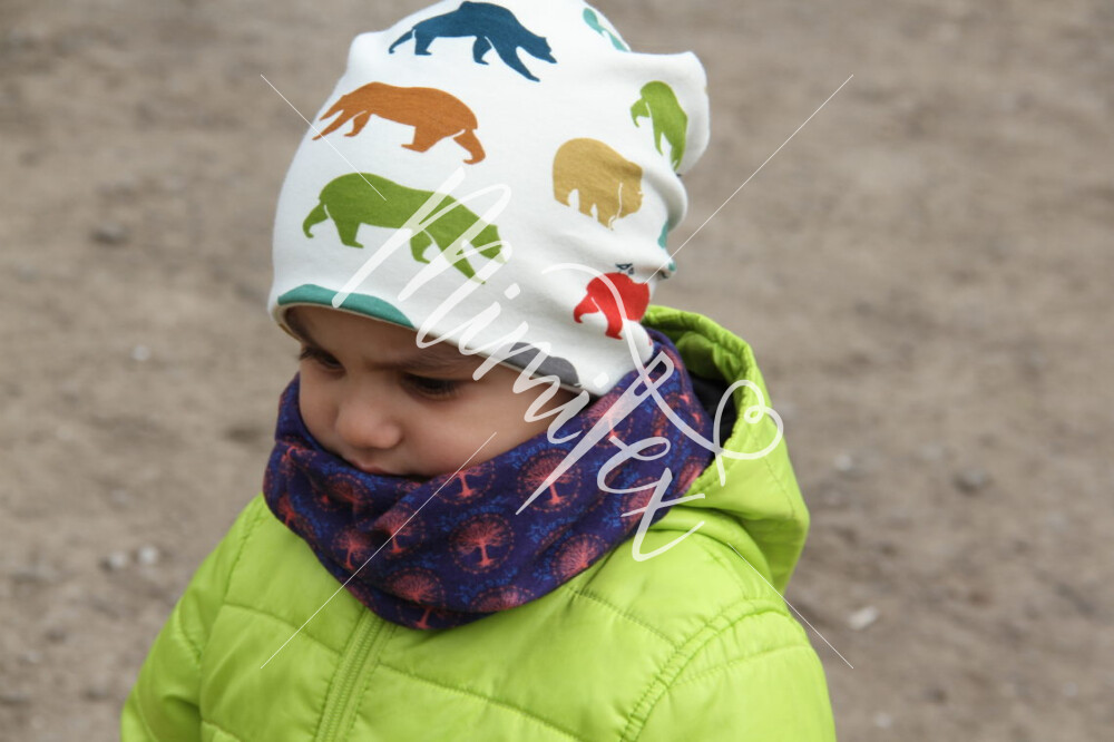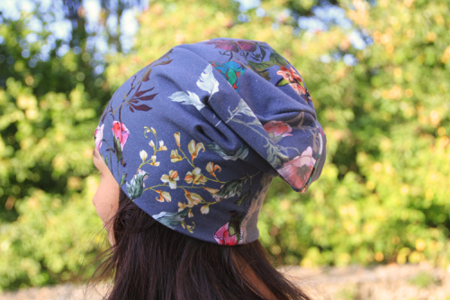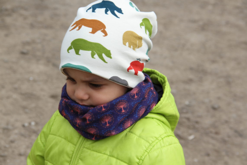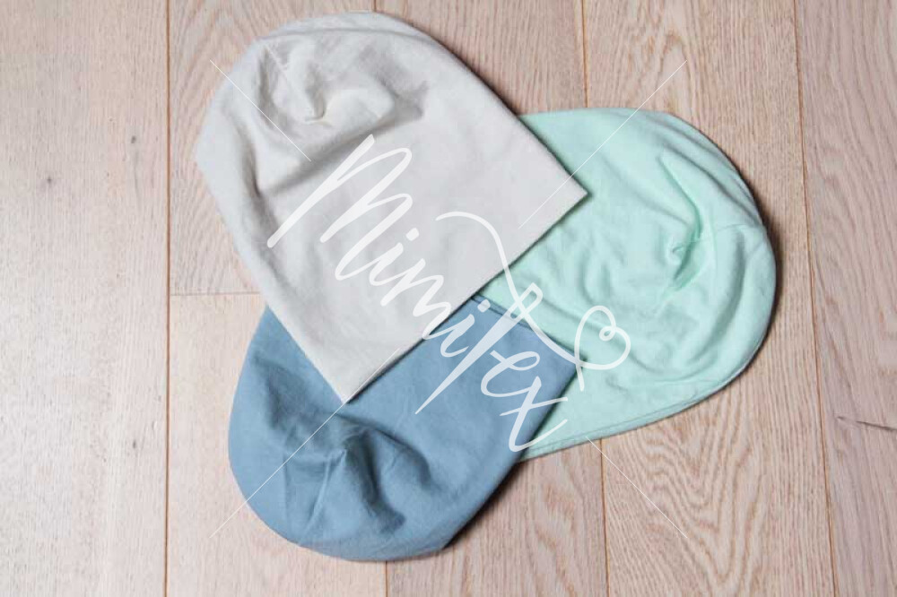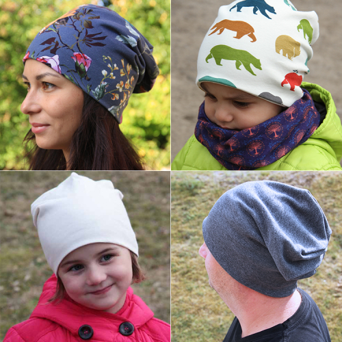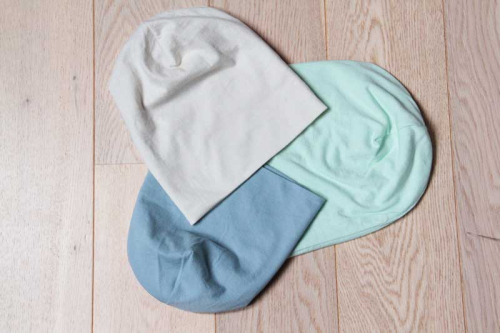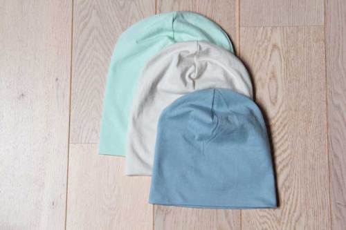 Čepici můžete ušít z mnoha druhů látek, vždy by ale látka měla být pružná, používejte proto tedy výhradně pleteniny.