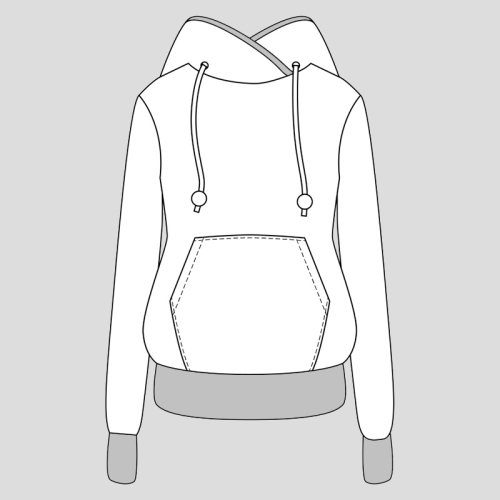 Střih na dámskou mikinu je zpracovaný v profesionálním programu pro konstrukci střihů a je vyvedený ve velikostech 32–60.