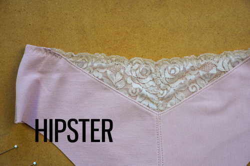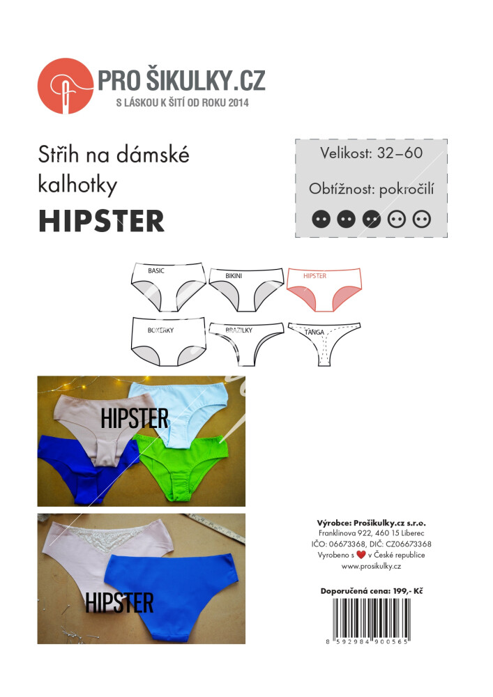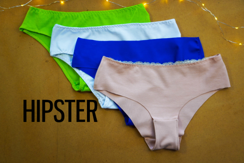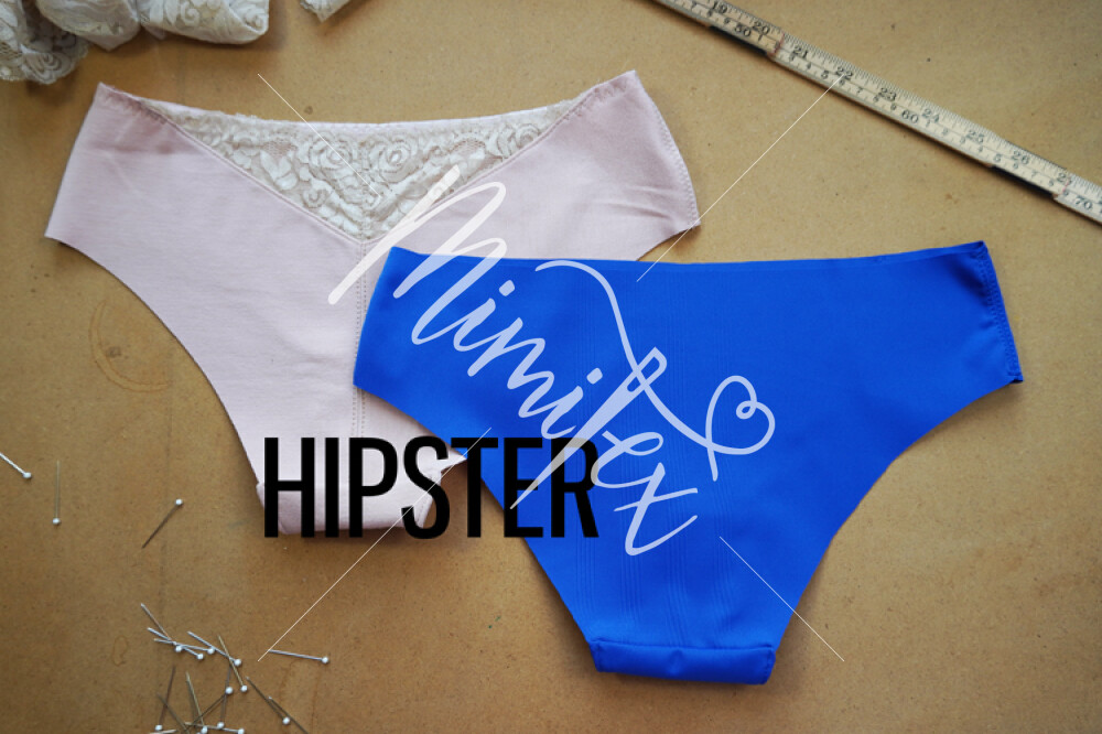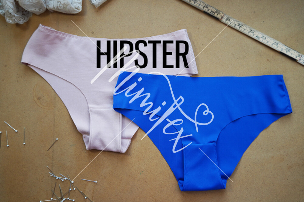 HIPSTER - kalhotky s nízkým pasem a vykrojenějším předním i zadním dílem. Zadní díl půlený (možnost odšít v jednodílné verzi), s možností vsadky do zadního středového švu.