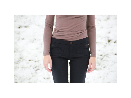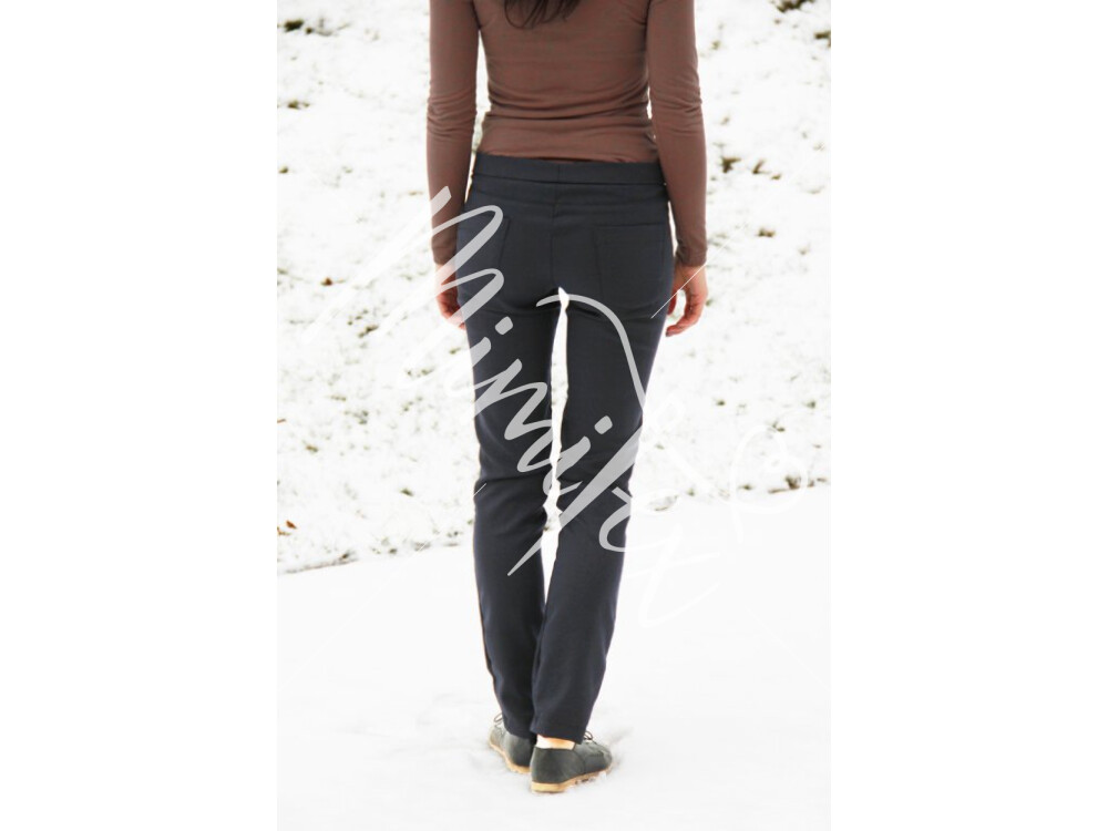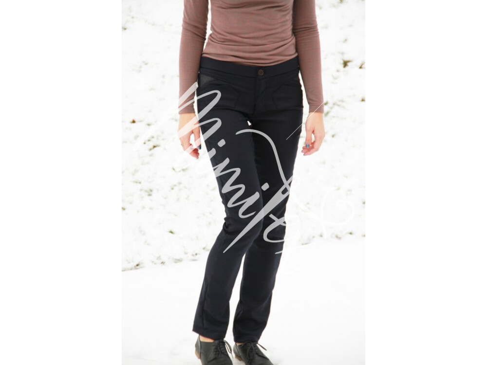 Kalhotové materiály s příměsí elastanu, tkaniny s keprovou vazbou, riflovina apod.
