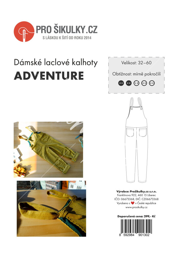 Střih na jednoduché dámské laclové kalhoty ADVENTURE je zpracovaný v profesionálním programu pro konstrukci střihů a je vyvedený ve velikostech 32–60.