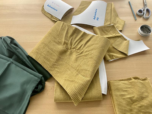 Střih je vhodný pro středně silné tkaniny, ideální bude středně silná džínovina, středně silný manžestr, keprové kalhotové tkaniny apod.