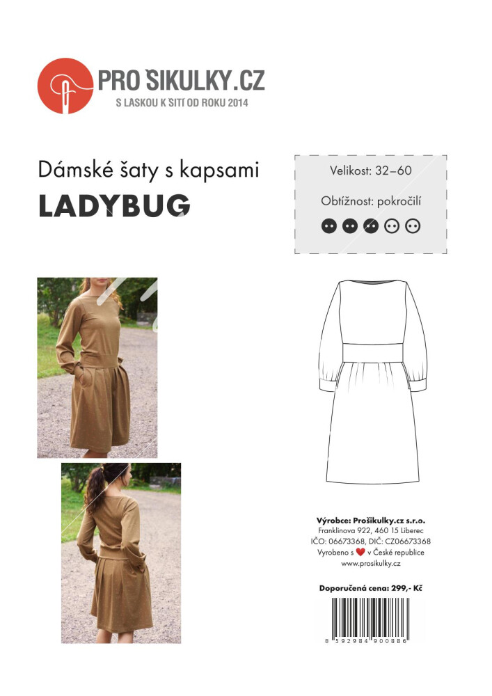 Střih na dámské šaty je zpracovaný v profesionálním programu pro konstrukci střihů a je vyvedený ve velikostech 32–60.