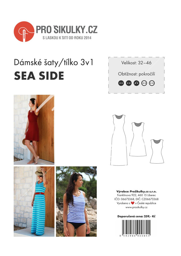 Střih 3v1 na dámské tílko nebo šaty ve dvou délkách je zpracovaný v profesionálním programu pro konstrukci střihů a je vyvedený ve velikostech 32–46.