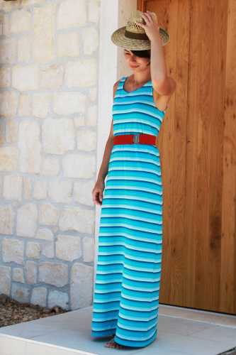 Střih na dámské šaty je vhodný pro slabší pleteniny, např. bavlněný nebo viskózový úplet s elastanem apod.