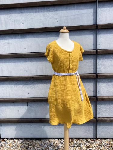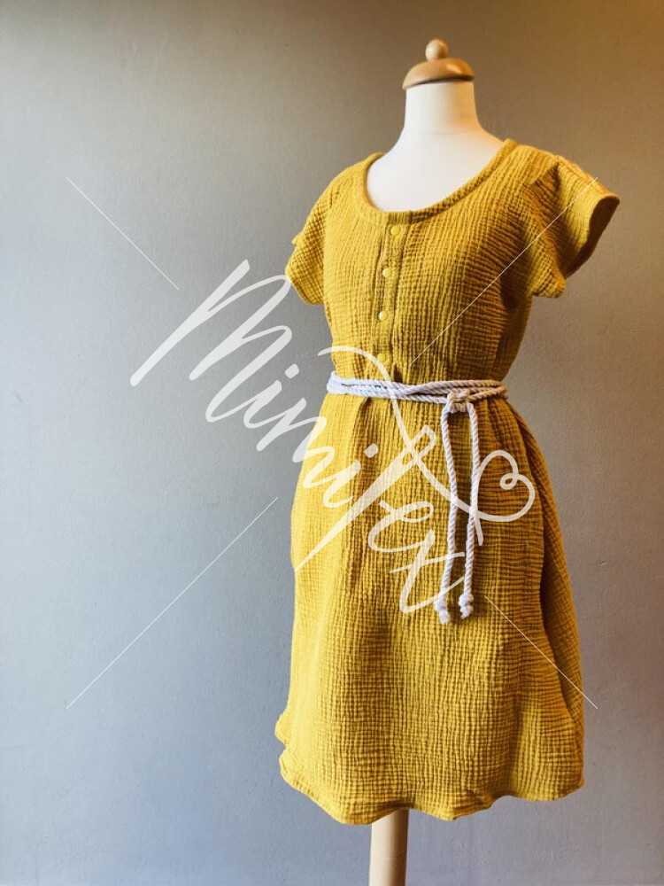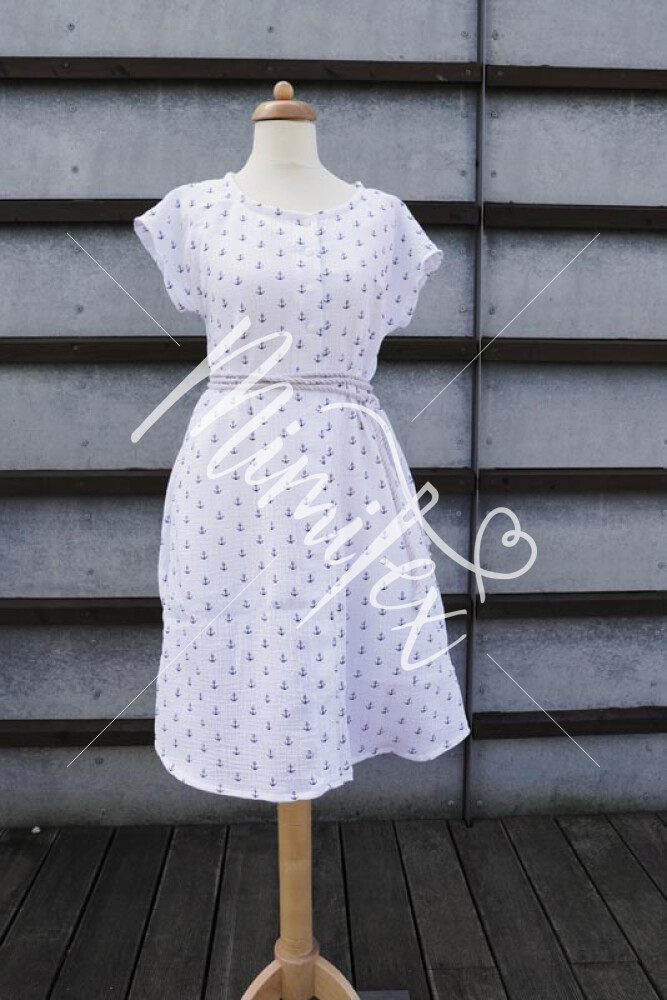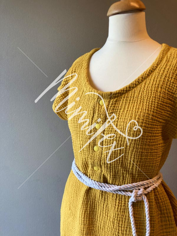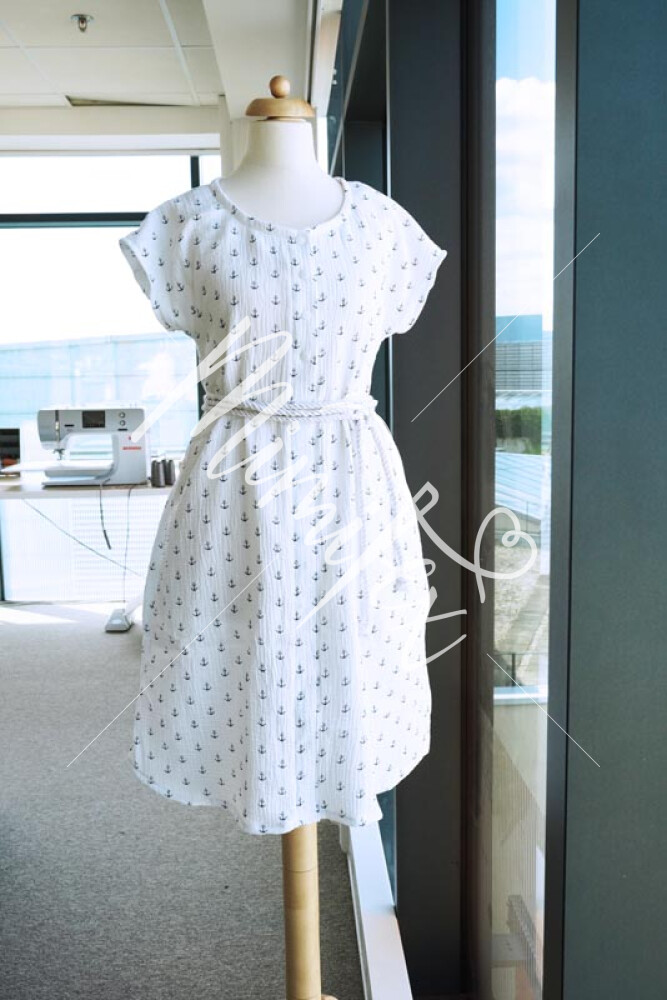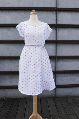 Dámské letní šaty jsou jednoduchého áčkového střihu s přinechanými rukávy a kapsami v bočních švech. V předním dílu je zapínání na knoflíčky nebo druky a šaty jsou tak vhodné i i jako kojící. Střih na dámské šaty je zpracovaný v profesionálním konstrukčním programu pro dámské velikosti 32–60.