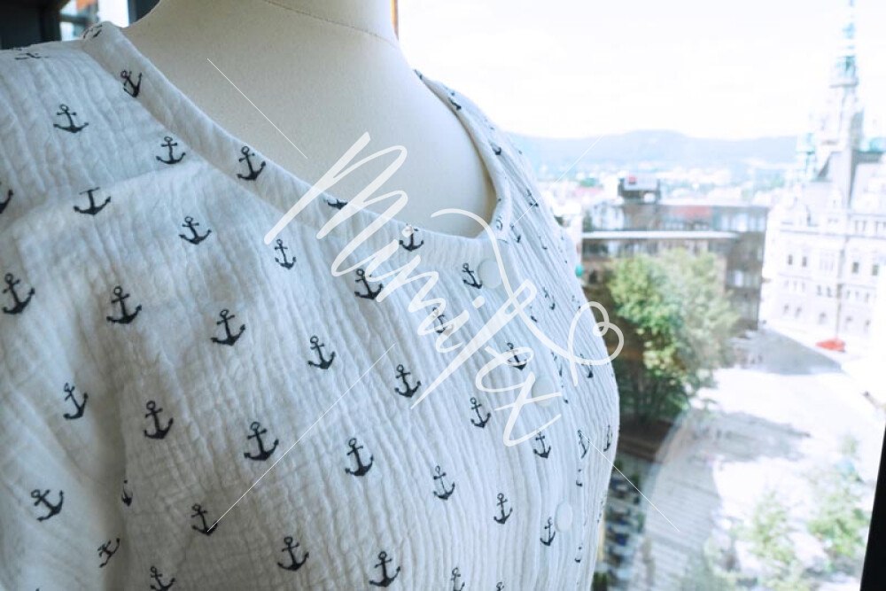 Střih je vhodný pro slabší splývavé tkaniny jako je například mušelín (dvojitá gázovina) nebo např. bavlněný popelín apod.