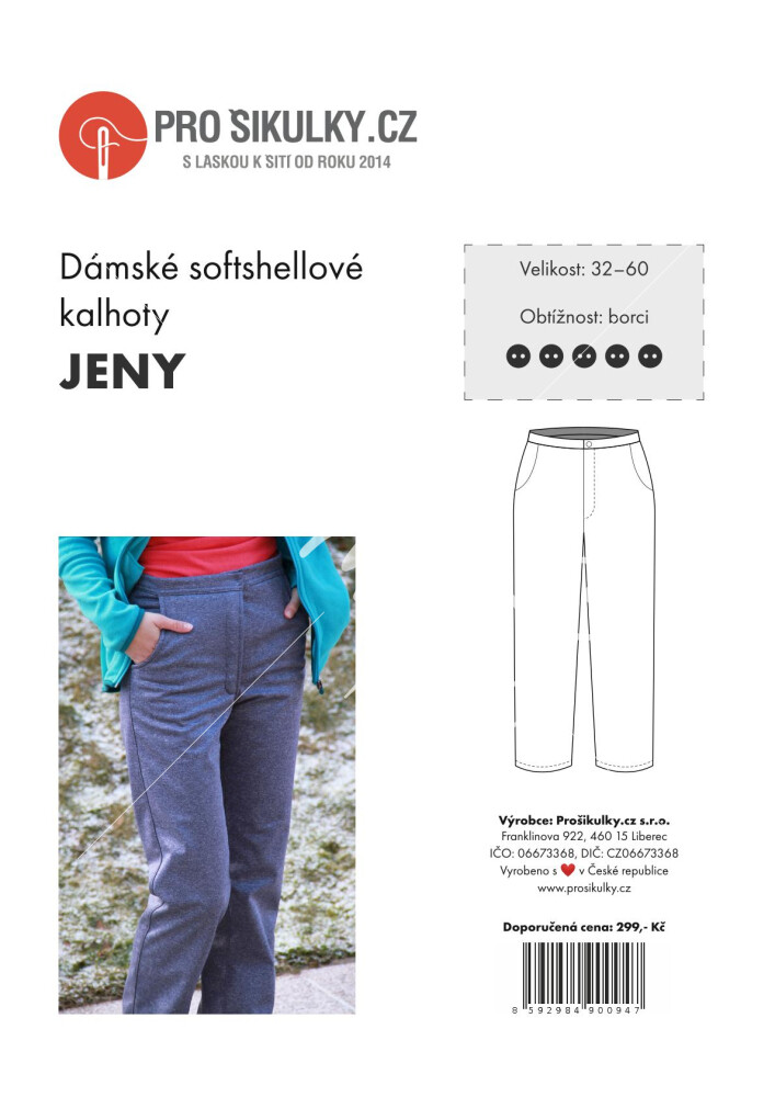 Střih na dámské kalhoty JENY je zpracovaný v profesionálním programu pro konstrukci střihů a je vyvedený ve velikostech 32–60.