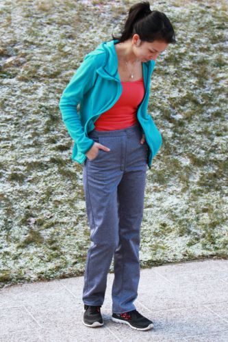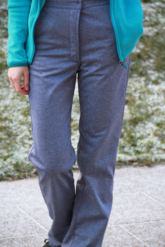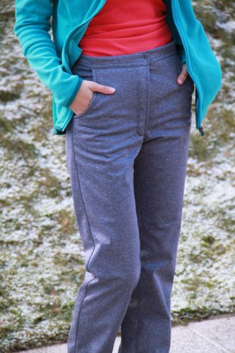 Na dámské kalhoty se báječně hodí středně silné tkaniny, vhodný je zimní softshell (s fleecem). Dále můžete použít jiné vhodné tkaniny jako například kepr, džínovina a další kalhotové látky.