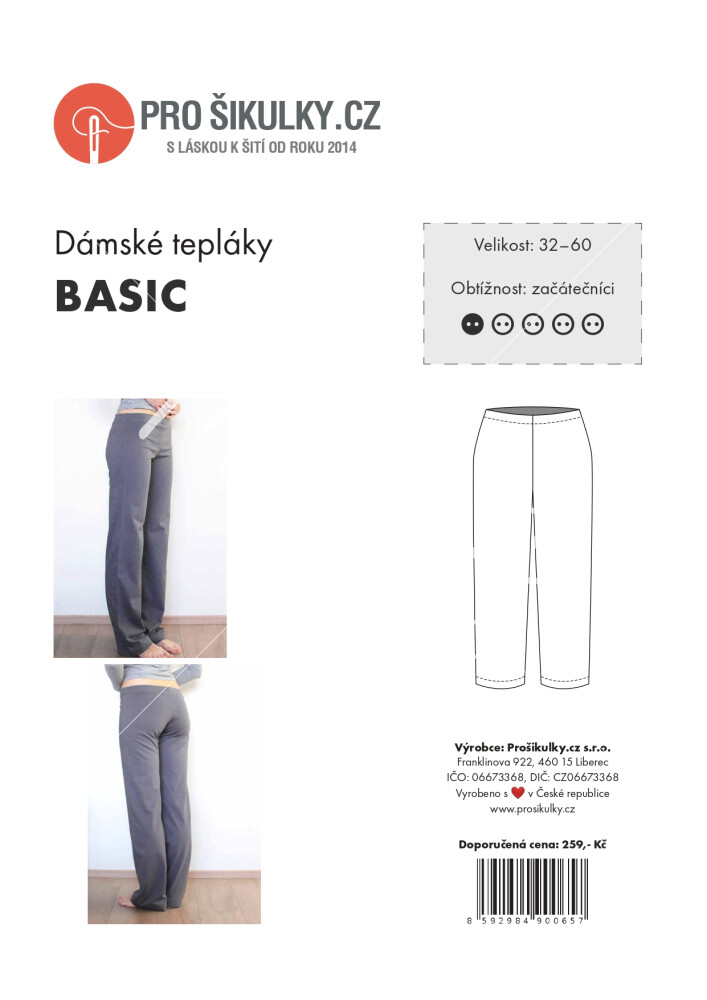 Střih na dámské tepláky je zkonstruován v profesionálním konstrukčním programu a je pro dámské velikosti 32-60.