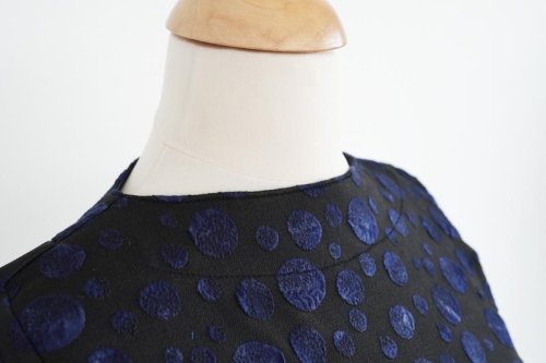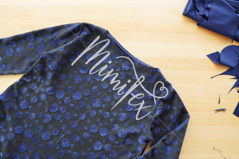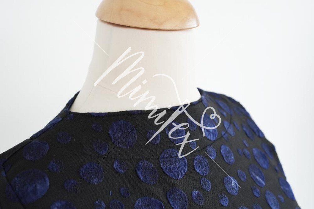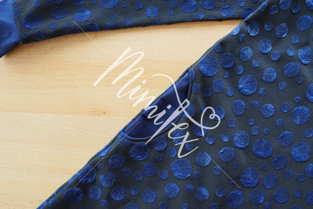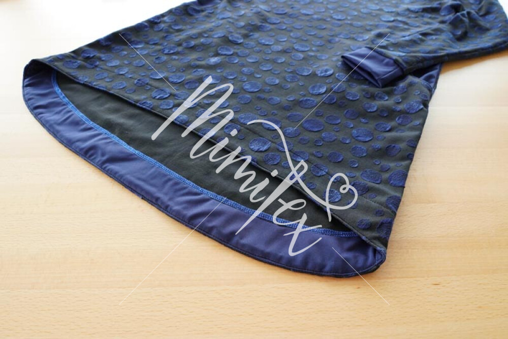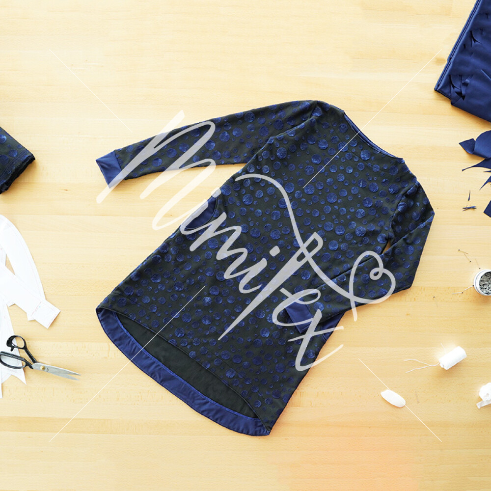 Šaty jsou jednoduchého mírně áčkového střihu s přinechaným nízkým stojáčkem. Šaty mají dlouhé rukávy zakončené lemy, kulaté kapsy v bočních švech a volnou siluetu bez prsních záševků. Střih na dámské volné šaty je zpracovaný v profesionálním konstrukčním programu pro dámské velikosti 32–60.