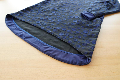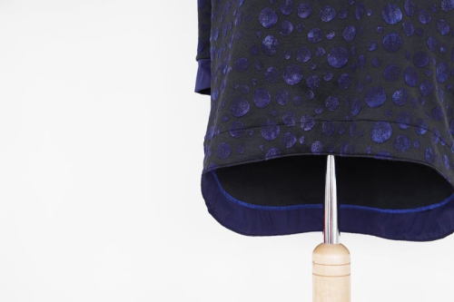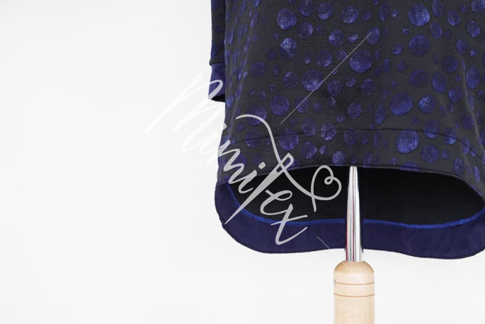 Střih na dámské šaty je vhodný pro středně silné pleteniny, např. elastická teplákovina, úplet French Terry apod.