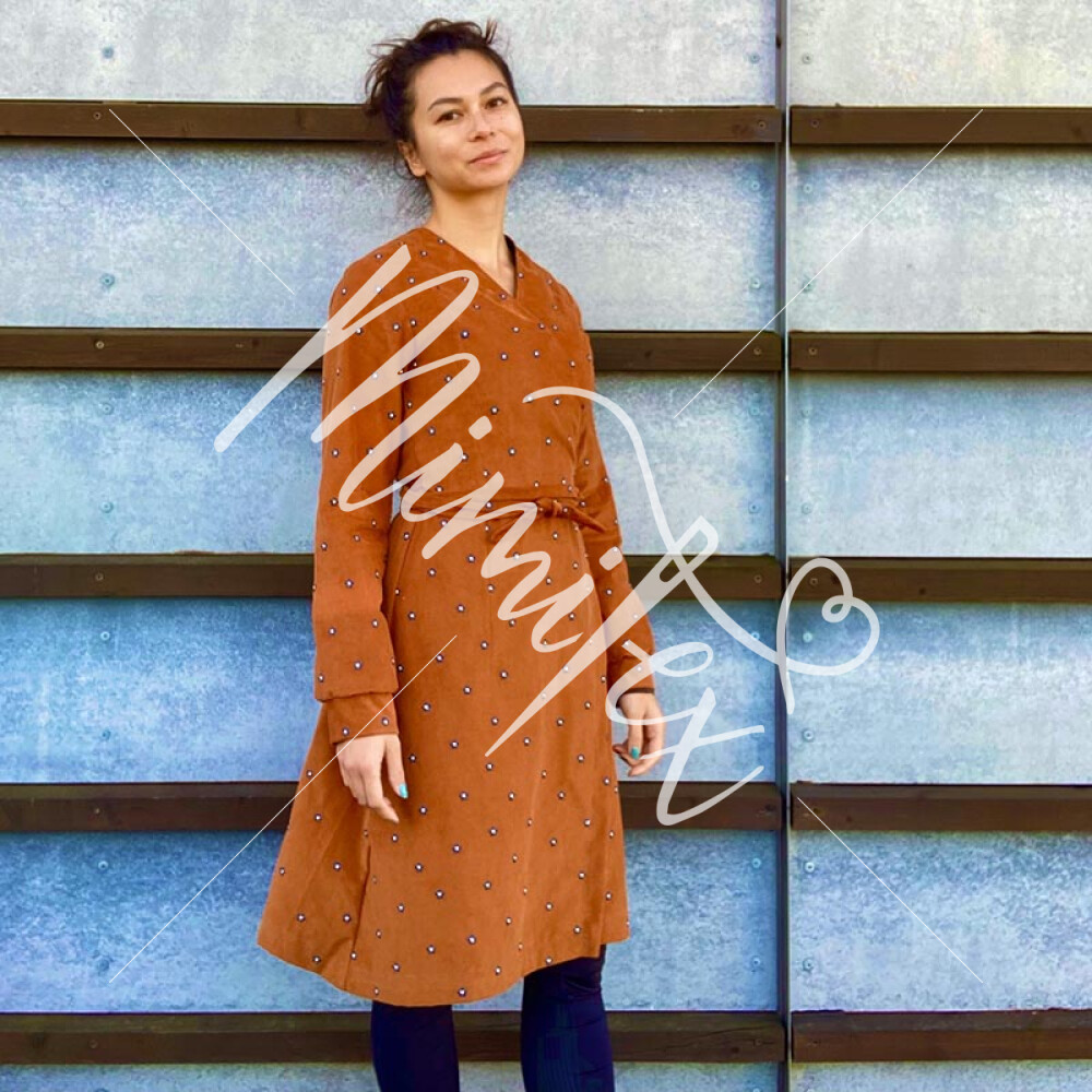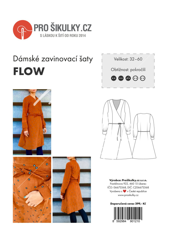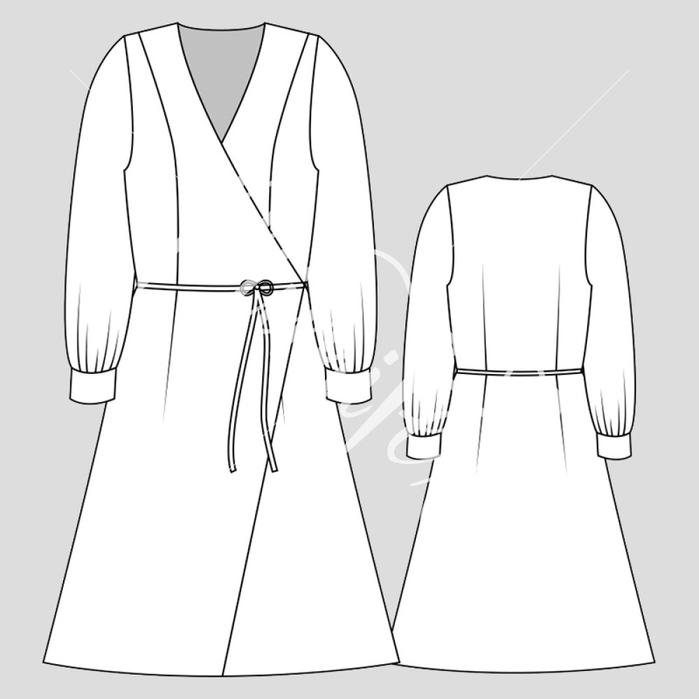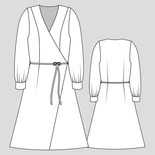 Dámské zavinovací šaty jsou jednoduchého mírně áčkového střihu s nabíranými rukávy do manžet. Střih na dámské zavinovací šaty je zpracovaný v profesionálním konstrukčním programu pro dámské velikosti 32–60.