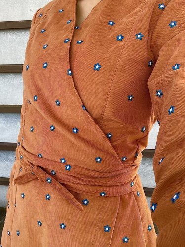 Střih je vhodný pro středně silné tkaniny, jako je např. manžestr, keprová tkanina střední gramáže, šatovky apod.