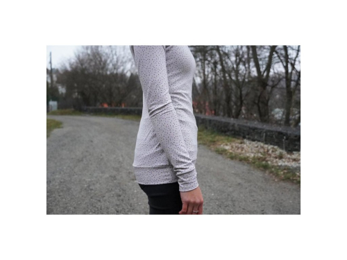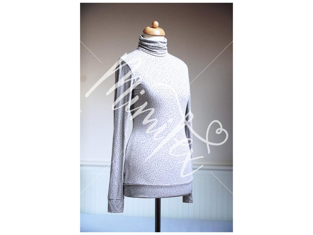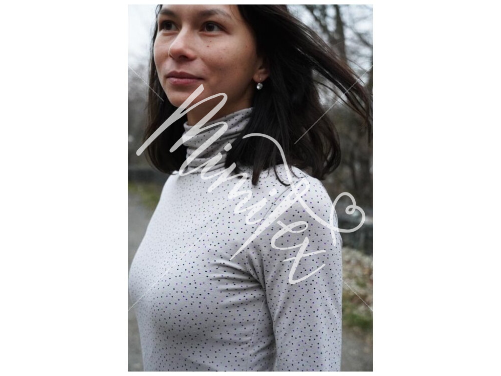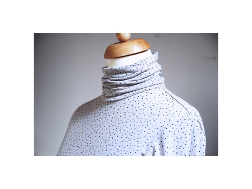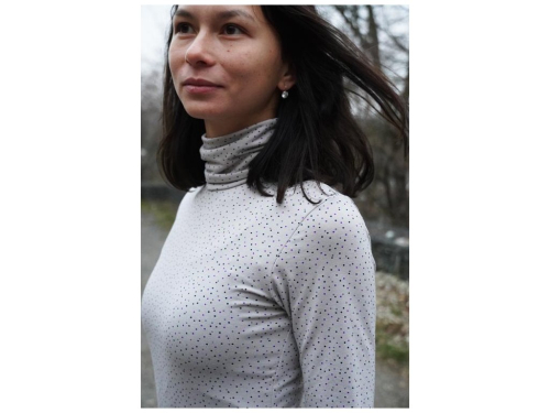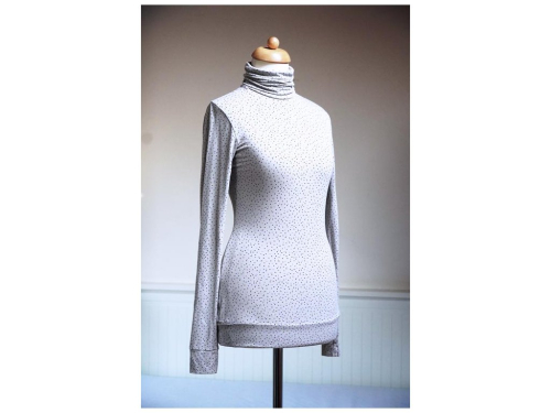 Tento střih na dámský rolák je zkonstruovaný pro lehčí pleteniny - pružné materiály (jednolícní úplet - ideálně bavlněný nebo viskózový s elastanem apod.).