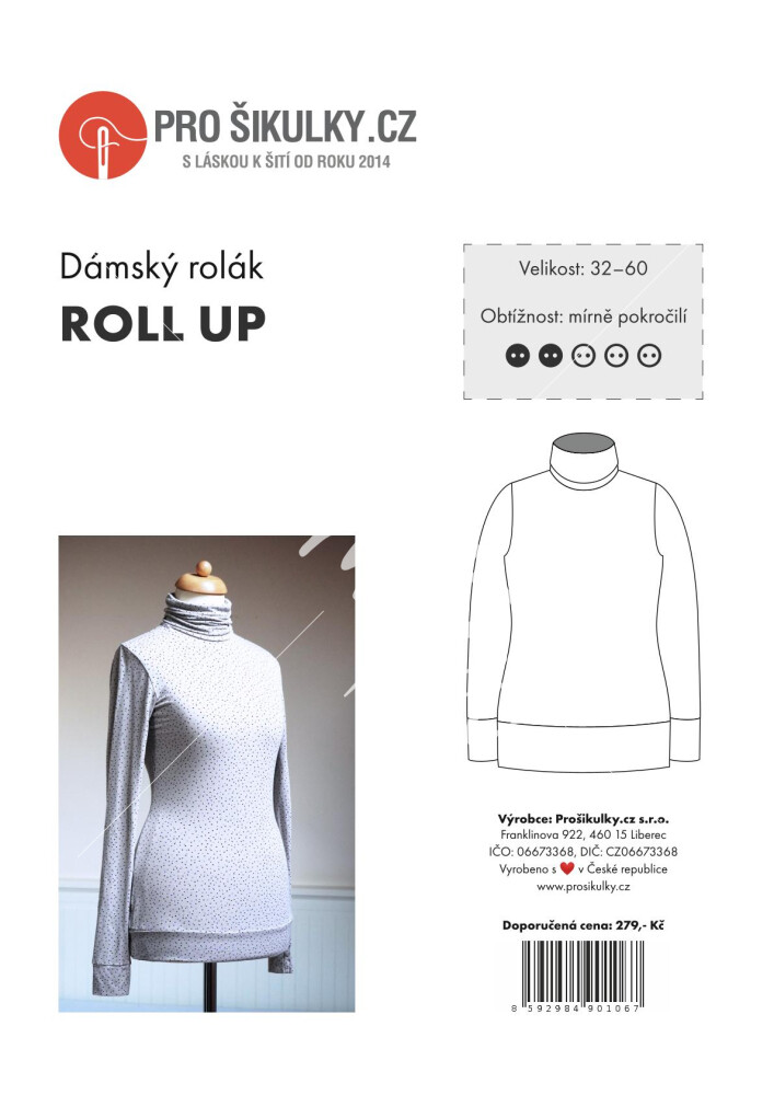 Střih na dámský rolák je v těle přiléhavý. Průkrčník je zakončený rolákem, které se přehrnuje na polovinu. Rukávy i spodní část trička jsou lemovány širokými "manžetami". Střih je zpracovaný v profesionálním programu pro konstrukci střihů a je vyvedený ve velikostech 32–60.