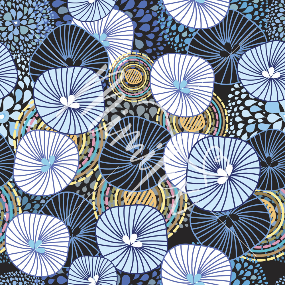Elastischer Softshell mit blauen abstrakten Blumen