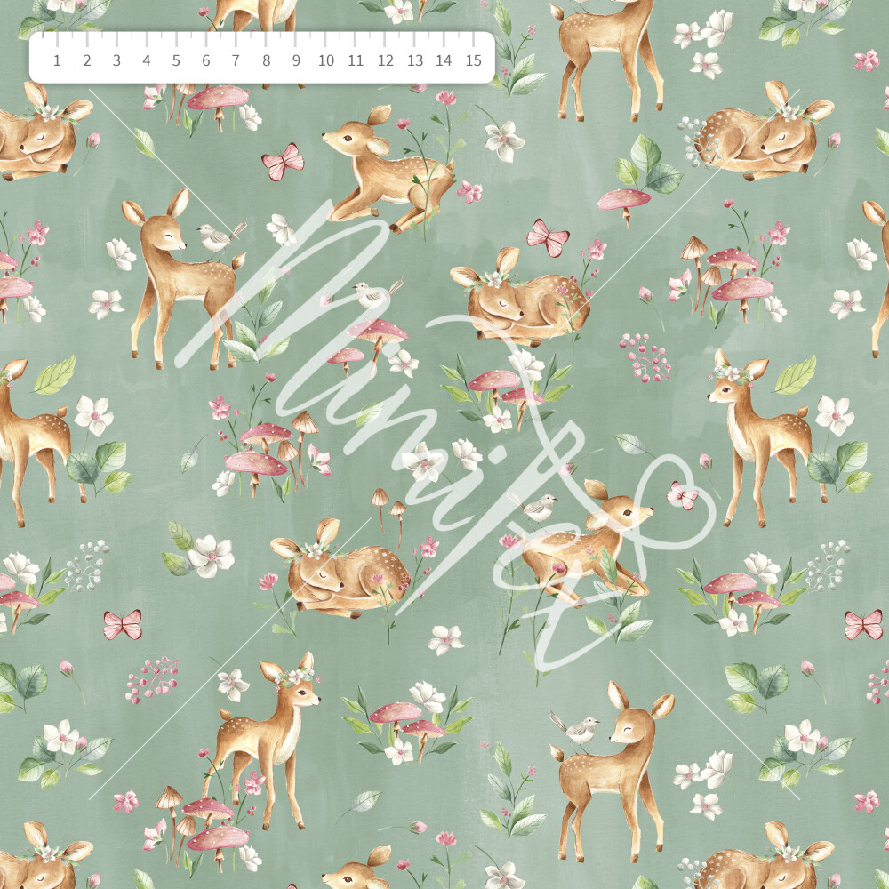 Elastischer Softshell mit Rehkitzen und Fliegenpilz