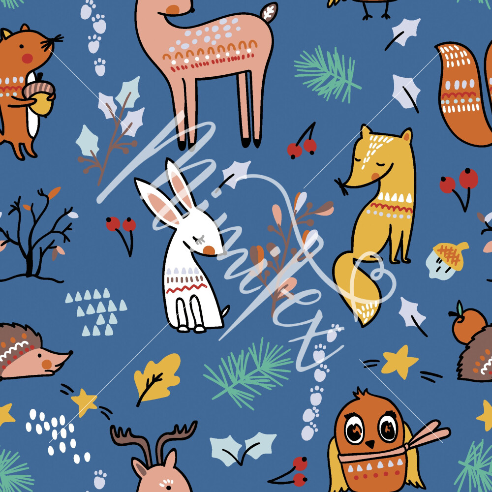 Elastischer Softshell mit Tiermotiven und einem Igel auf Blau