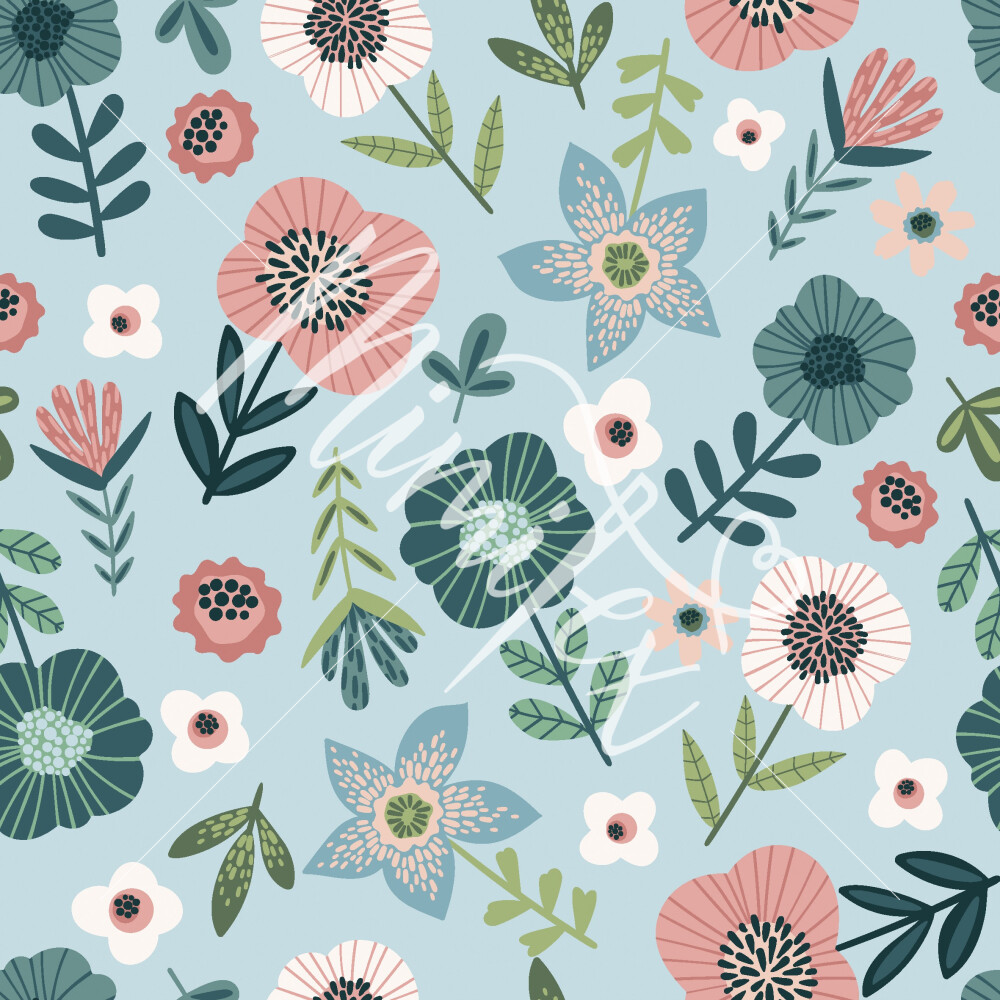 Softshell elastisch Blumen auf hellblau