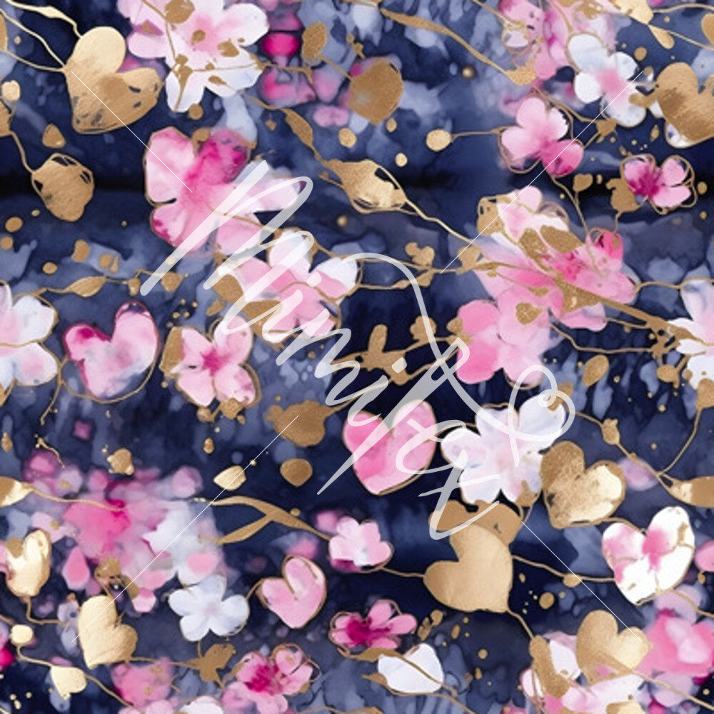 Softshell elastisch Kirschblüten auf dunkelblau