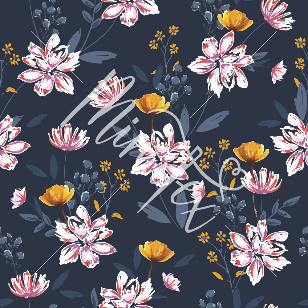 Softshell elastisch mit Wiesenblumen auf dunkelblau
