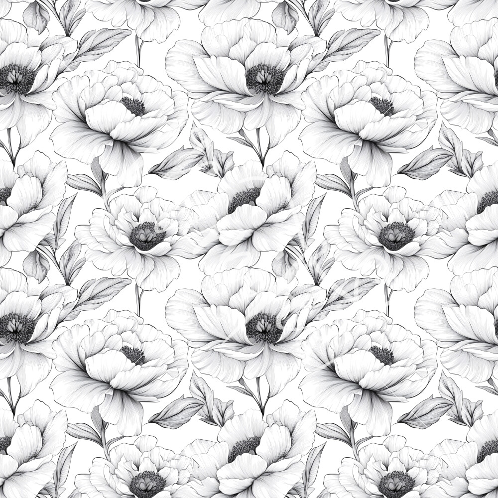 Softshell elastische Pfingstrosen schwarz-weiß
