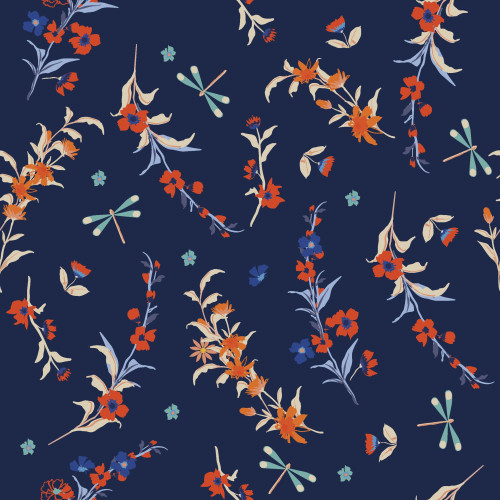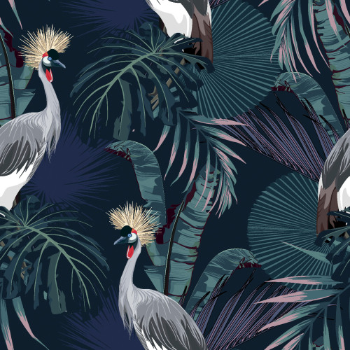 Elastischer Softshell mit Blättern und Kranich.