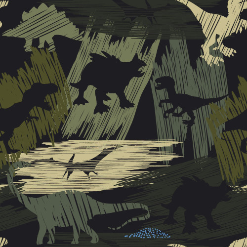 Elastischer Softshell mit Dinosauriern auf dunkelblauem Hintergrund