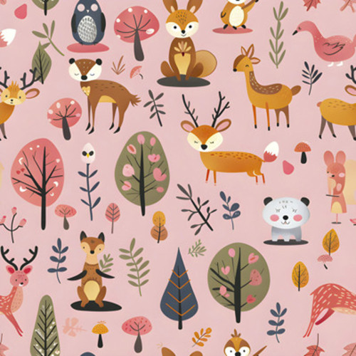 Softshell elastisch mit Waldtieren auf rosa
