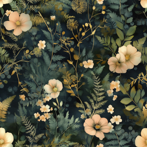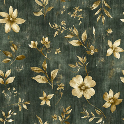 Elastischer Softshell mit goldenen Blumen auf grünem Hintergrund