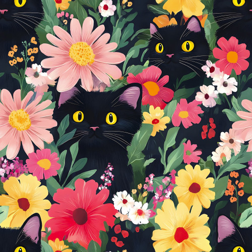 Softshell elastisch Katzen und bunte Blumen