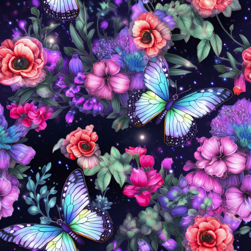 Softshell elastisch leuchtende Schmetterlinge und Blumen