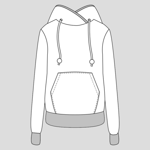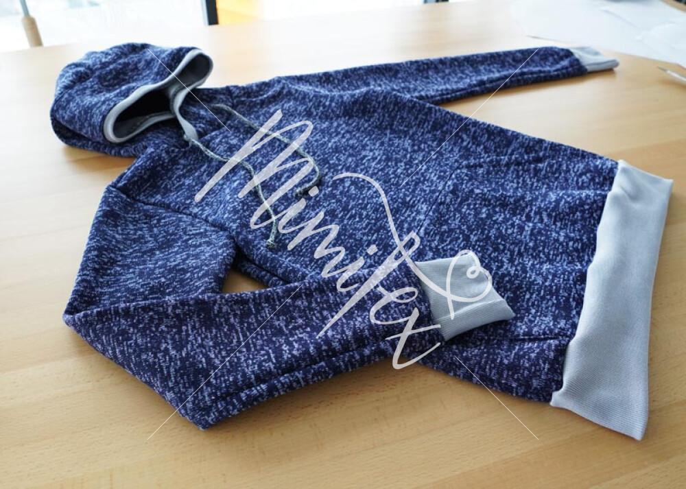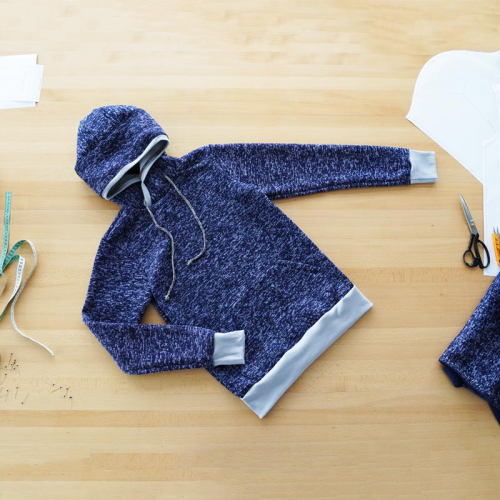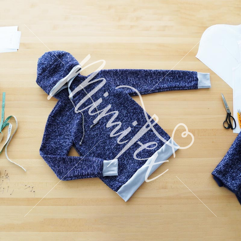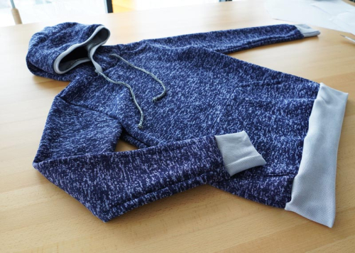 Střih na dětskou mikinu je vhodný pro silné méně pružné pleteniny, jako je např. elastický fleece, fleecová svetrovina, silná počesaná teplákovina apod.