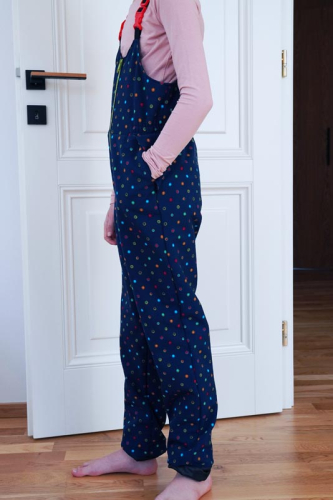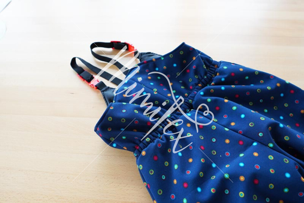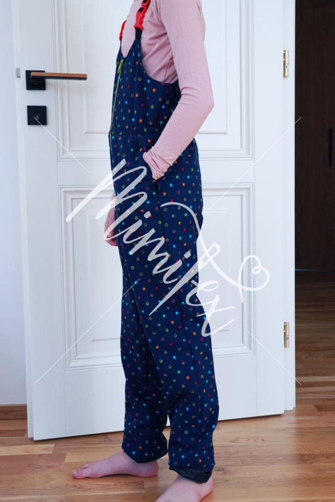 Dětské oteplováky nebo taky lyžařské kalhoty SNOW mají v bocích dvě patkami kryté klínové kapsy, šlové zapínání a v předním dílu dlouhý zip pro snadné oblékání a svlékání. Nohavice jsou opatřeny nohavicovými dílky do gumy, aby se nohavice nevyhrnovaly. V pase je všitá guma pro lepší padnutí a pohodlí během pohybu.