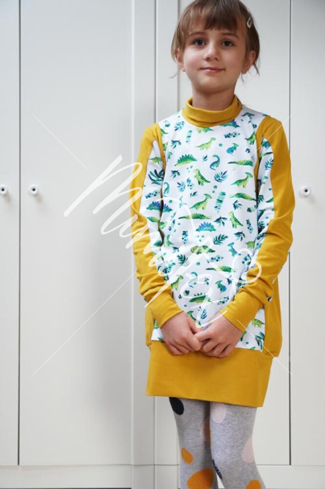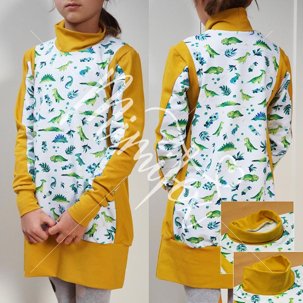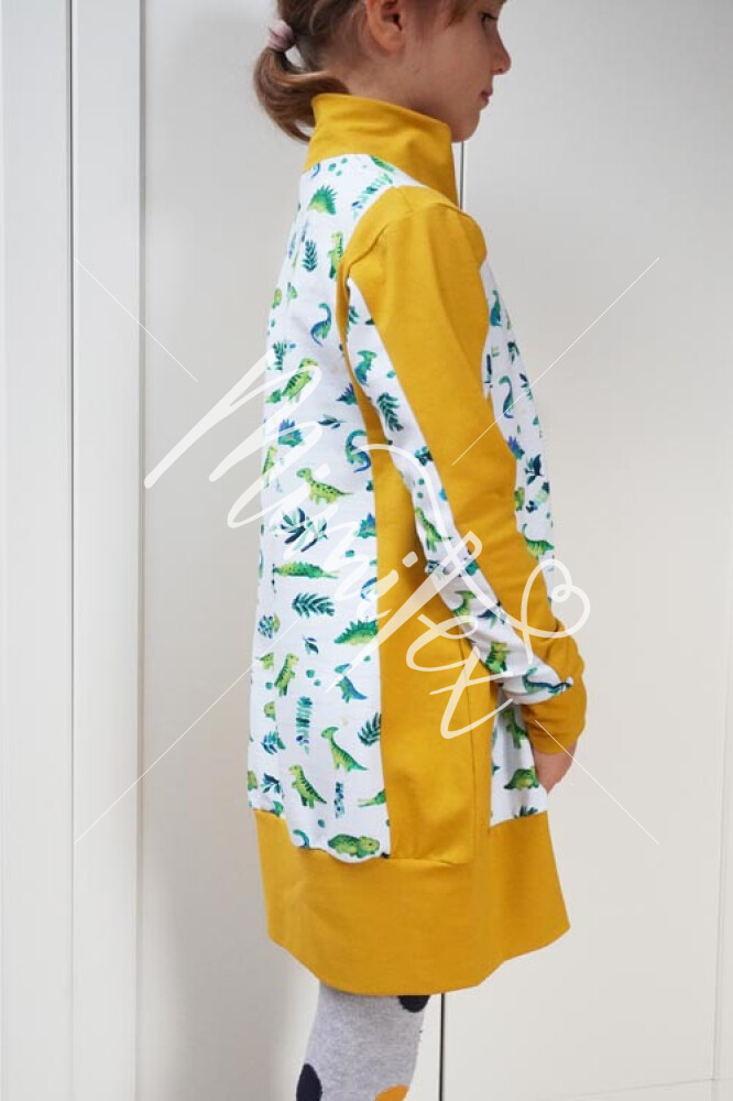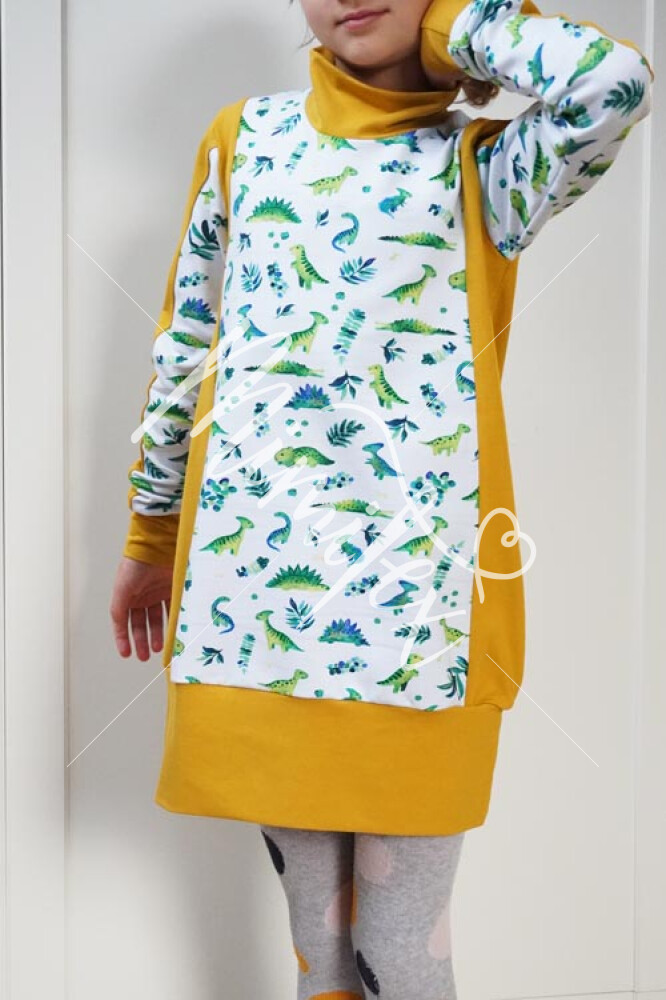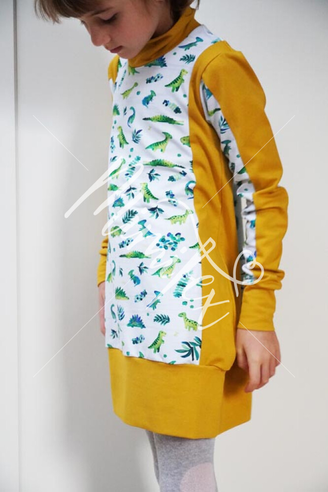 - Střih na jednoduché dětské (mikino)šaty je zpracovaný v profesionálním programu pro konstrukci střihů a je vyvedený ve velikostech 80 - 164.