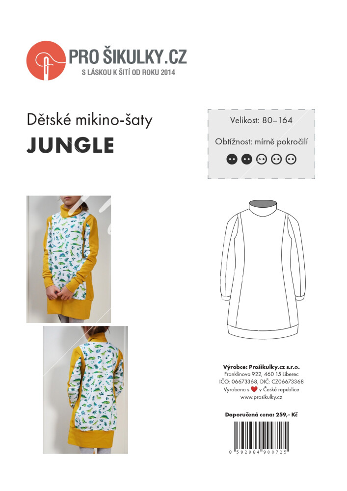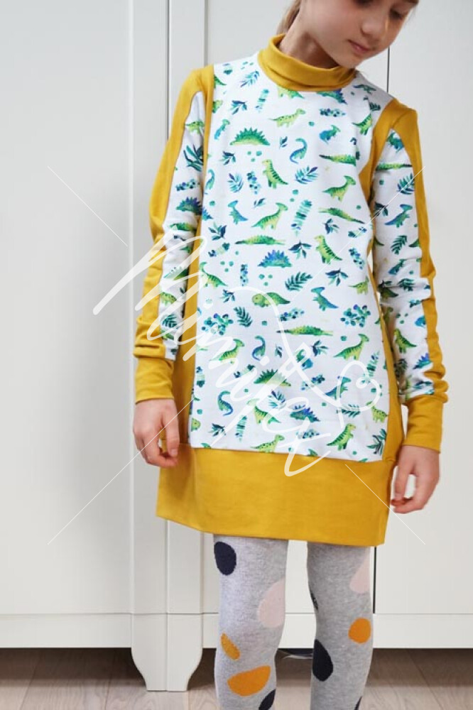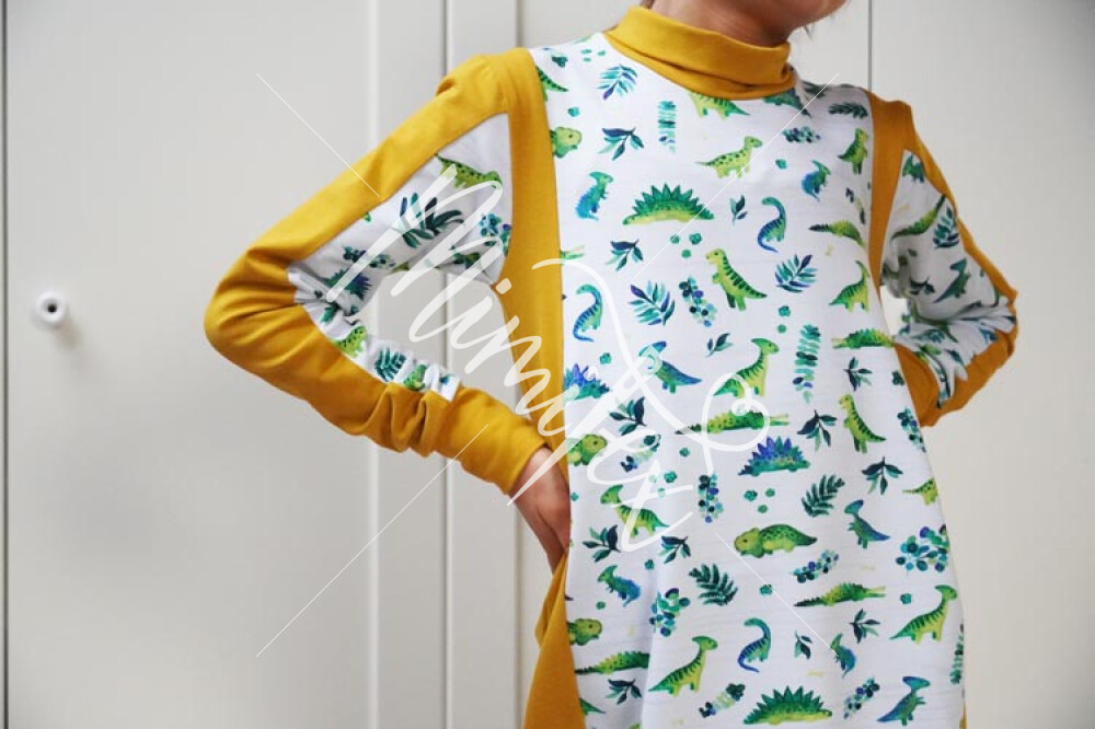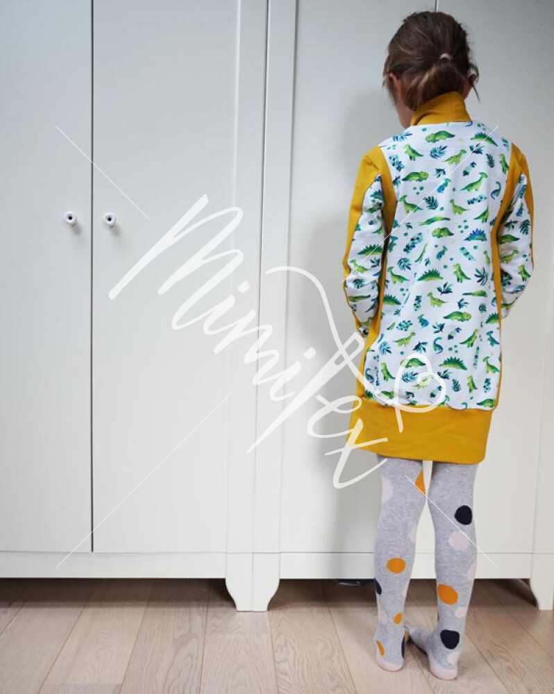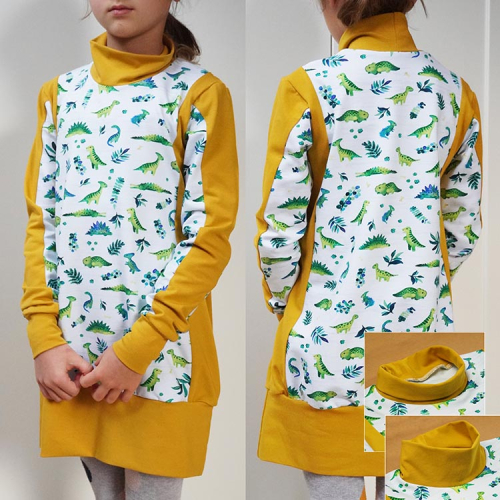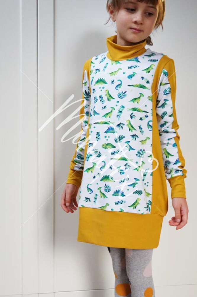 - Střih na jednoduché dětské (mikino)šaty je zpracovaný v profesionálním programu pro konstrukci střihů a je vyvedený ve velikostech 80 - 164.