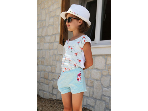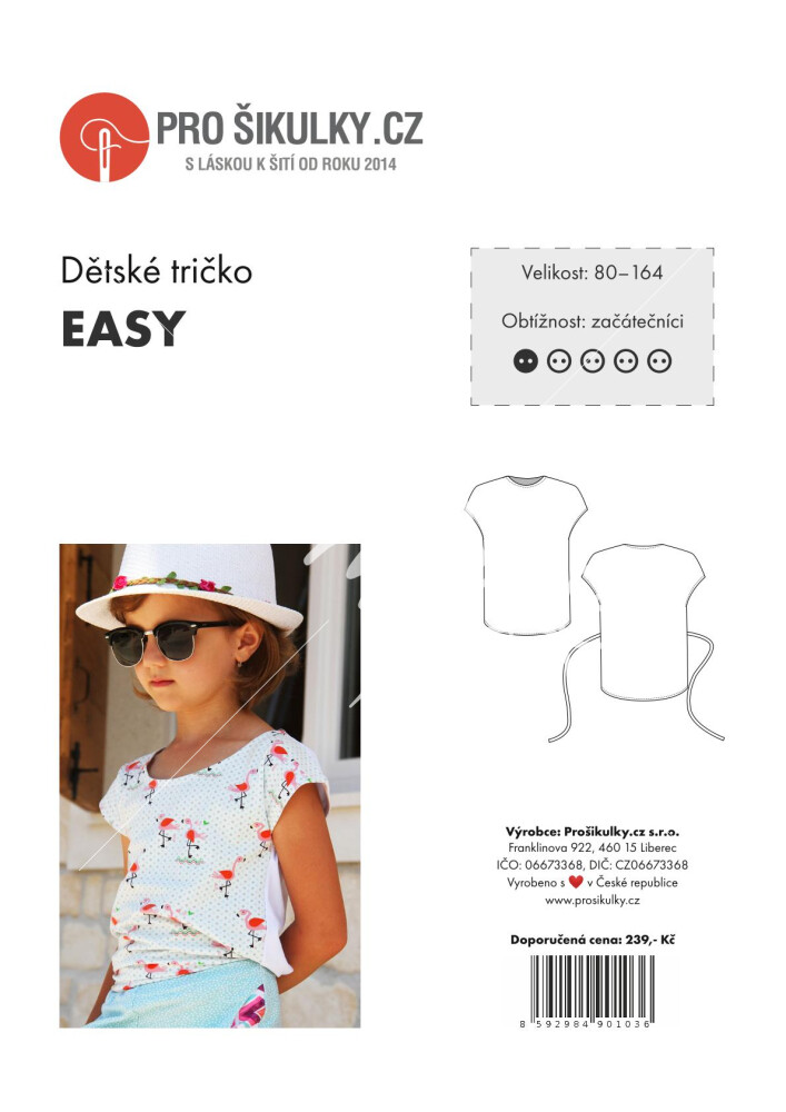 Střih je vhodný pro slabší pleteniny - pružné materiály, jako je např. bavlněný úplet s elastanem.