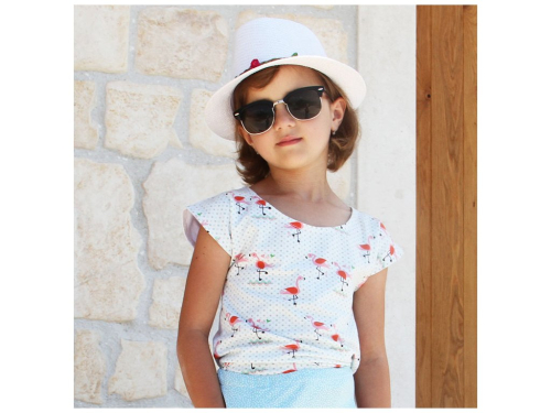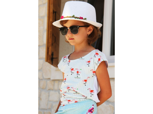 Střih na dětské tričko s přinechanými rukávy a kulatým výstřihem je zpracovaný v profesionálním konstrukčním programu a je vyvedený ve velikostech 80–164.