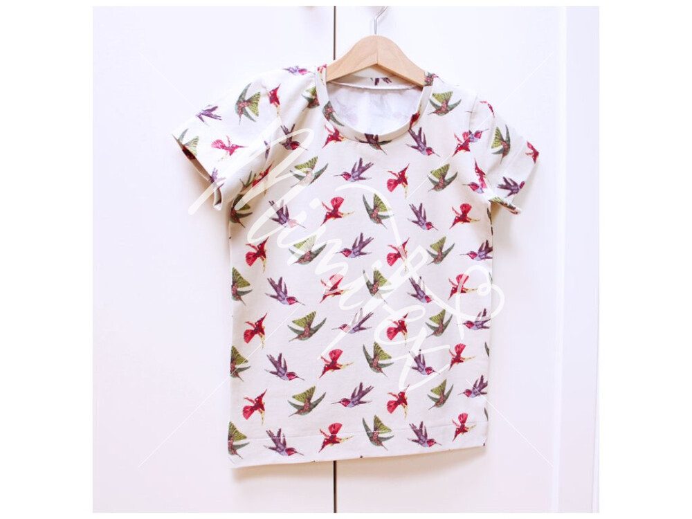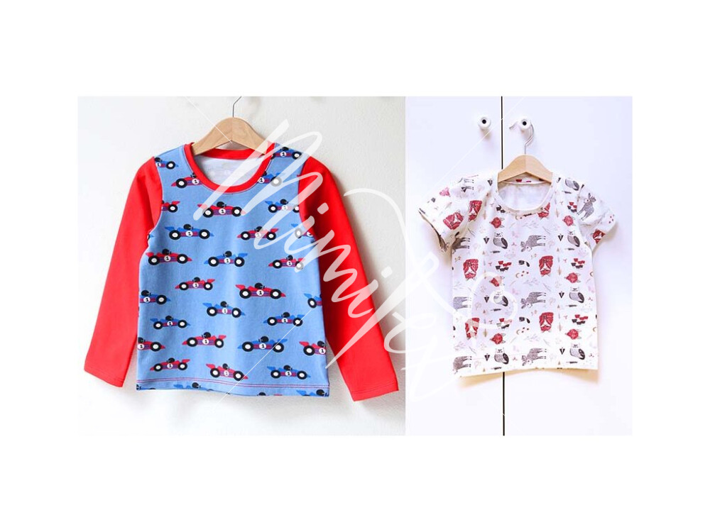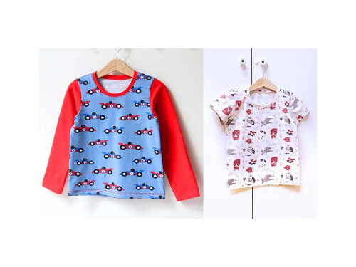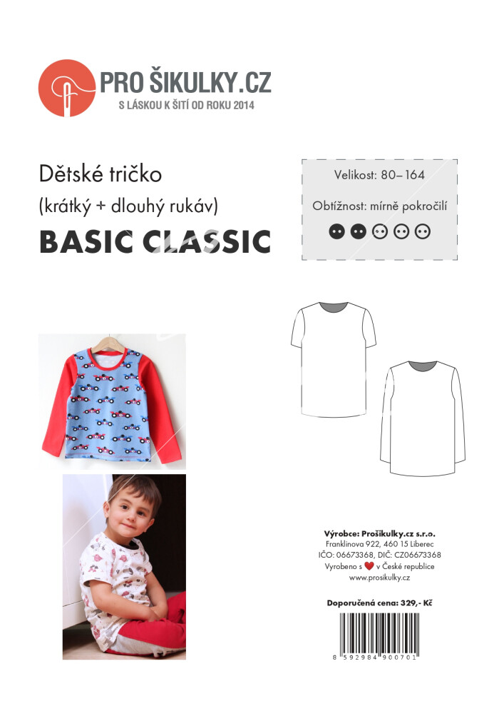 Střih na dětské tričko s klasickým hlavicovým rukávem (krátkým i dlouhým) a kulatým výstřihem je zpracovaný v profesionálním konstrukčním programu a je vyvedený ve velikostech 80–164.