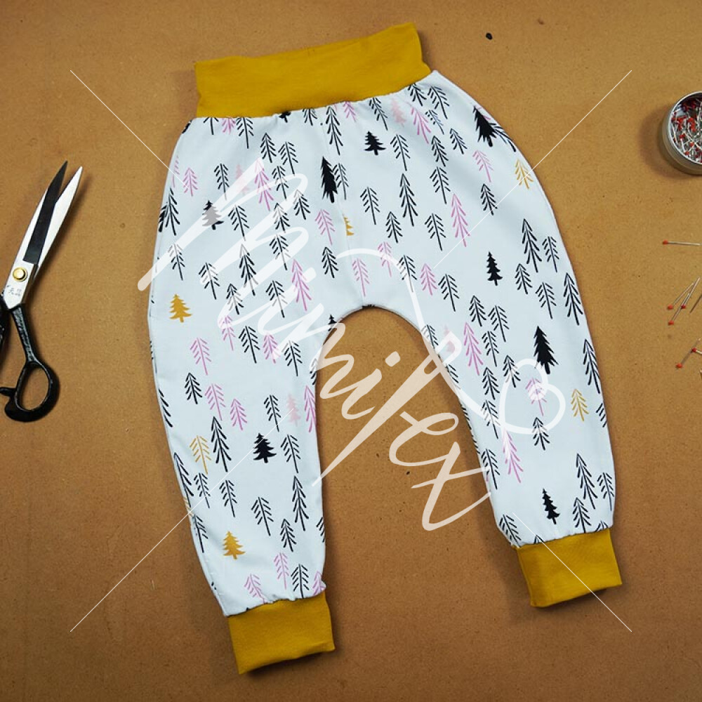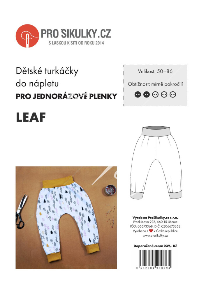 Střih na turkáčky je velmi jednoduchý, proto je šití vhodný i pro začátečníky. Turkáčky jsou přes plenku dostatečně široké a pohodlné.
