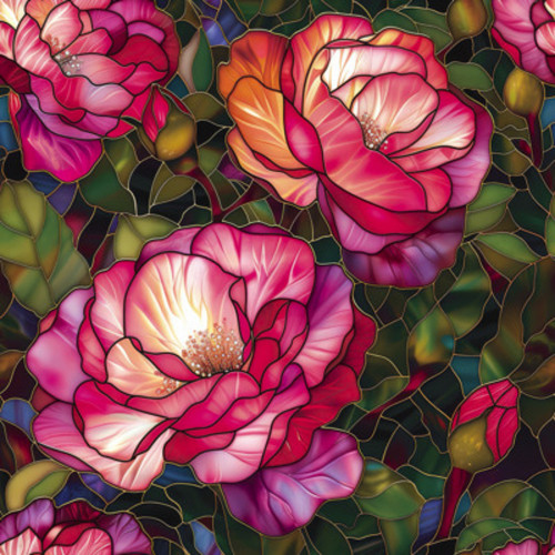 Jessica blouse fabric with stained glass pink roses