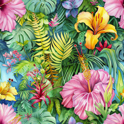 Jessica blouse fabric tropical flowers and ferns