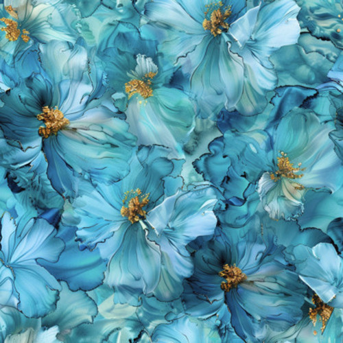 Blouse fabric Jessica blue and gold watercolor flowers