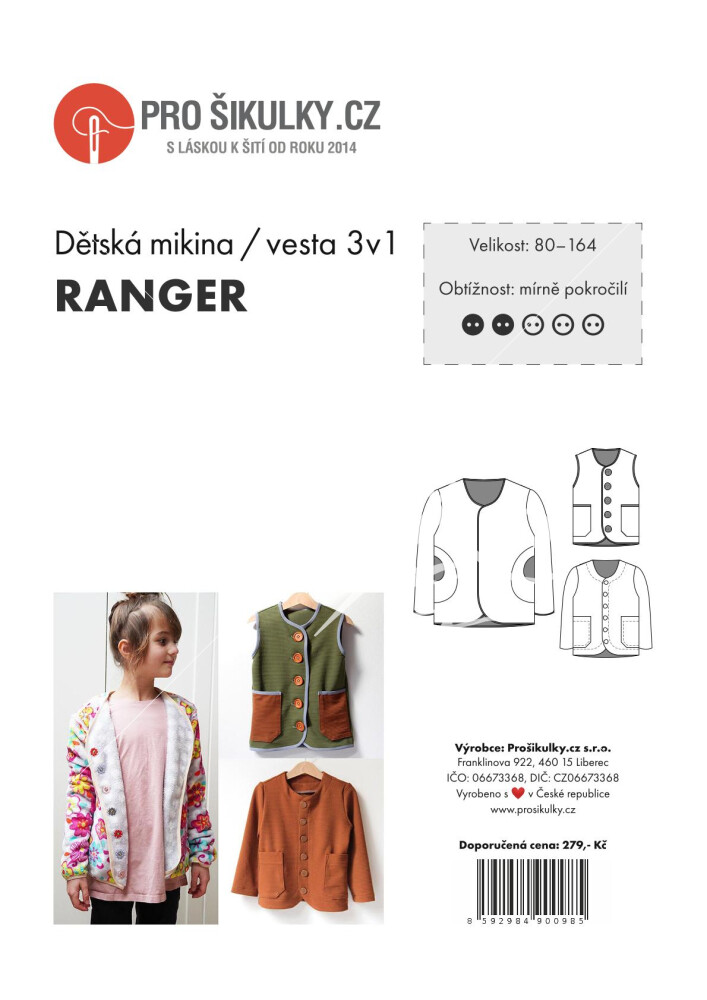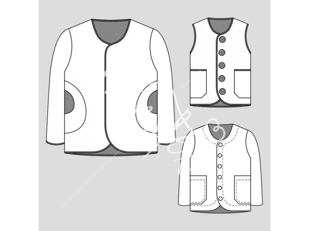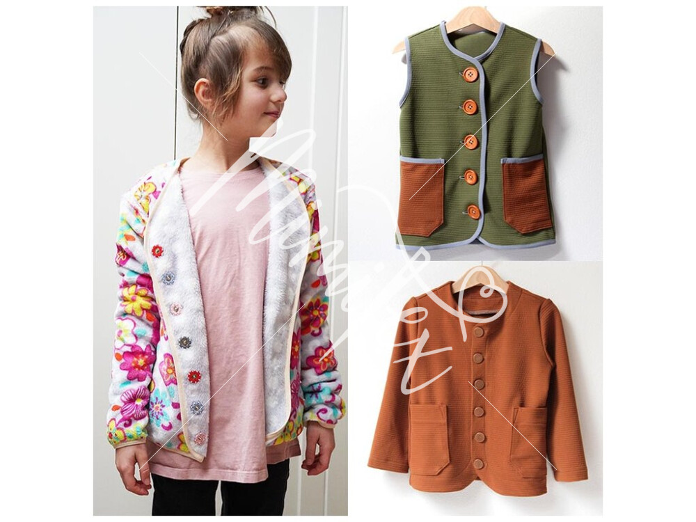 The simple 3-in-1 pattern for a child's reversible sweatshirt/vest/jacket is made in a professional pattern construction program and is available in sizes 80-164.
