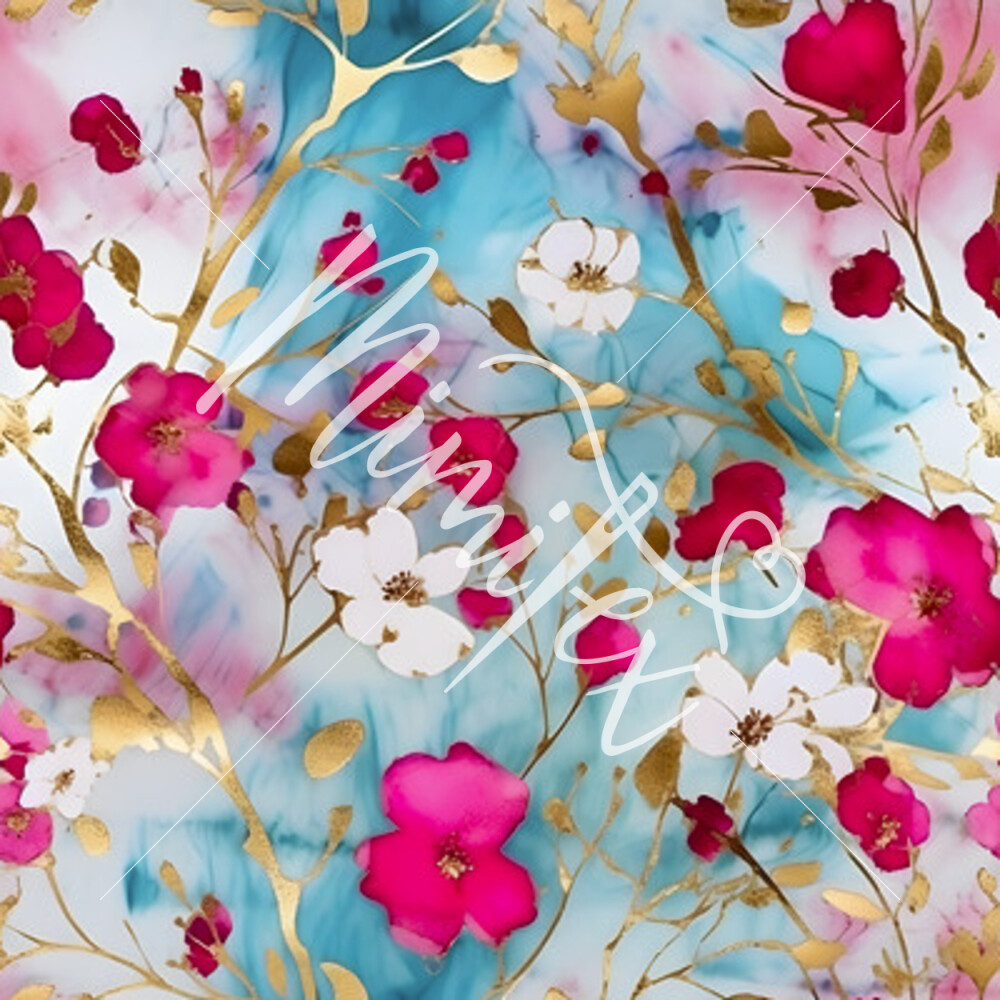 Jessica blouse fabric cherry blossoms on turquoise