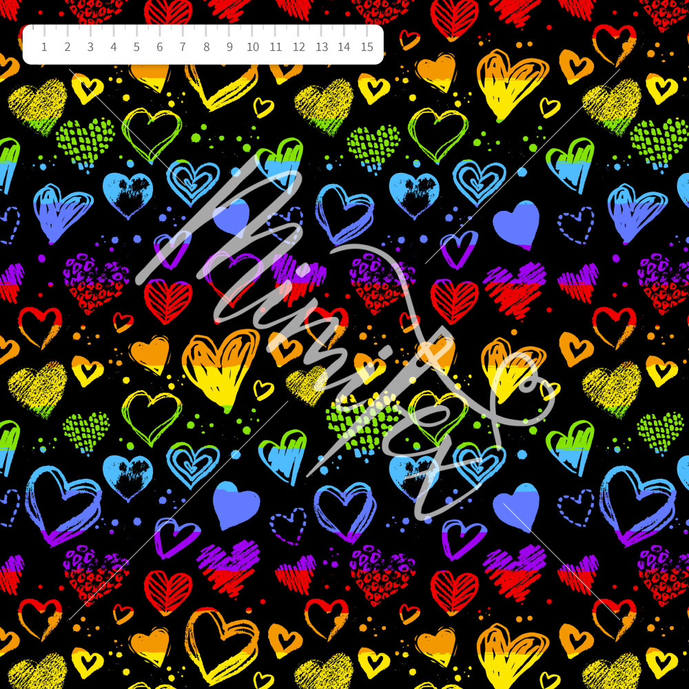 Jessica blouse fabric colorful hearts on black
