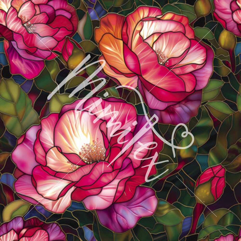 Jessica blouse fabric with stained glass pink roses