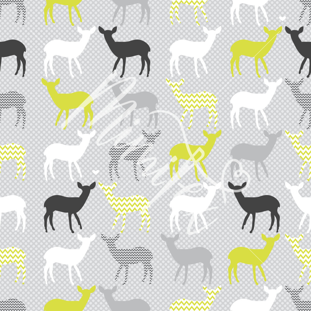 Jessica faux linen with deer on grey