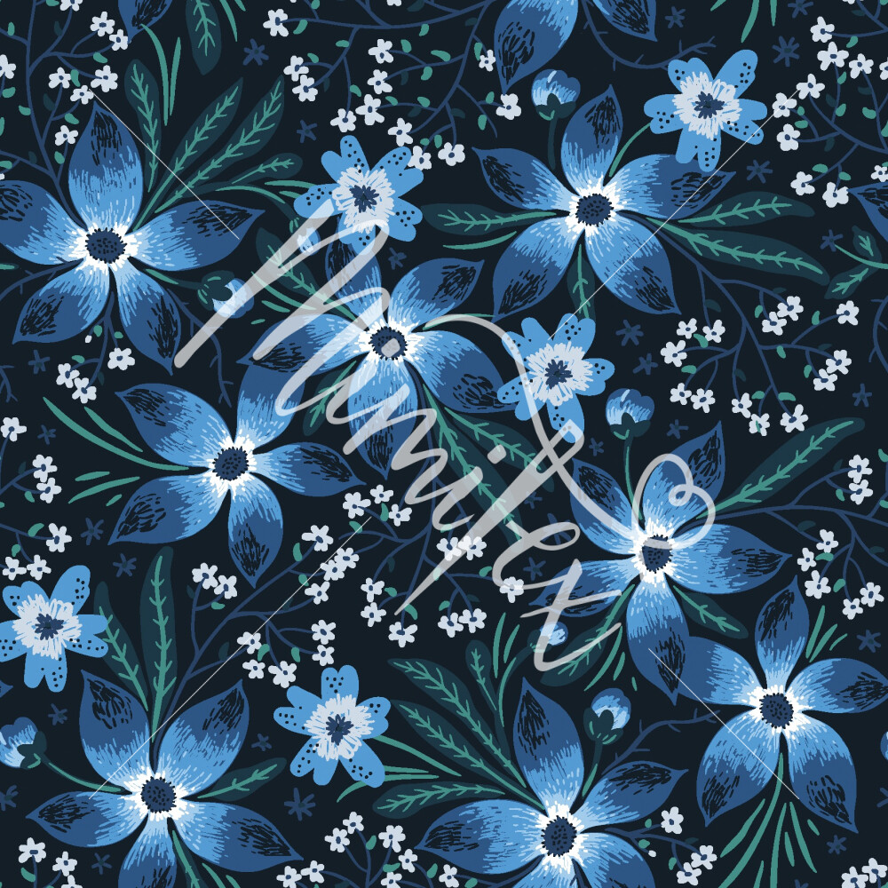 Jessica voile flowers on dark blue